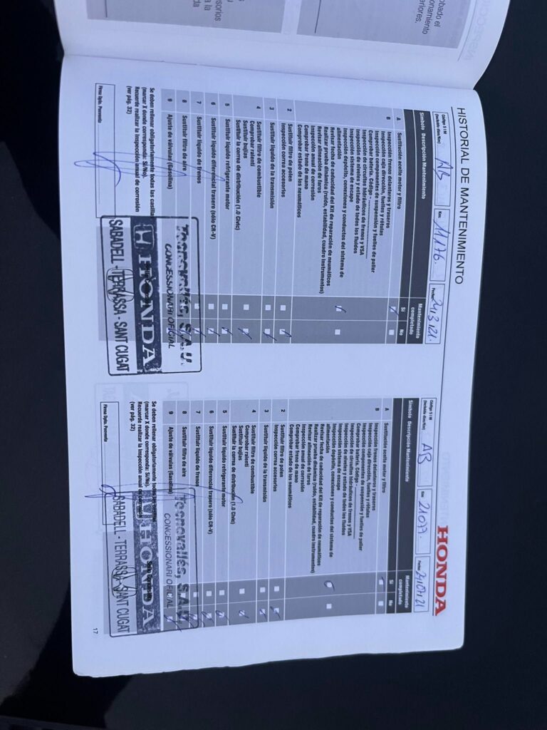 que solo han tenido el uso y disfrute de un propietario anteriorTodas las revisiones de este HONDA han sido pasadas en concesionario oficial HONDA TECNOVALLES SA de Sabadell (Barcelona) la ultima el 27/05/2025 con 115.124 Kms CERTIFICADO por